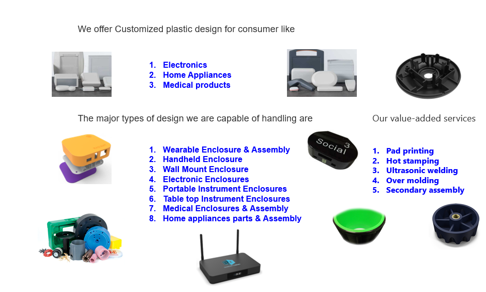 Enclosure 3D Printing, Injection Mold, and Die Casting, Product Label, Product box.